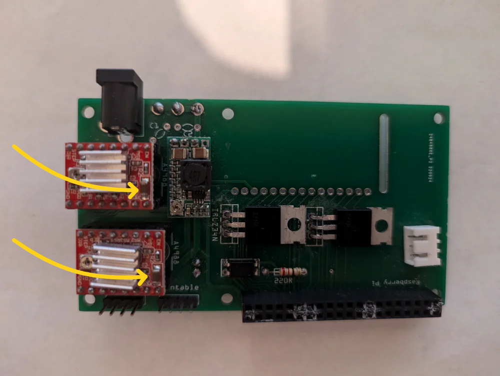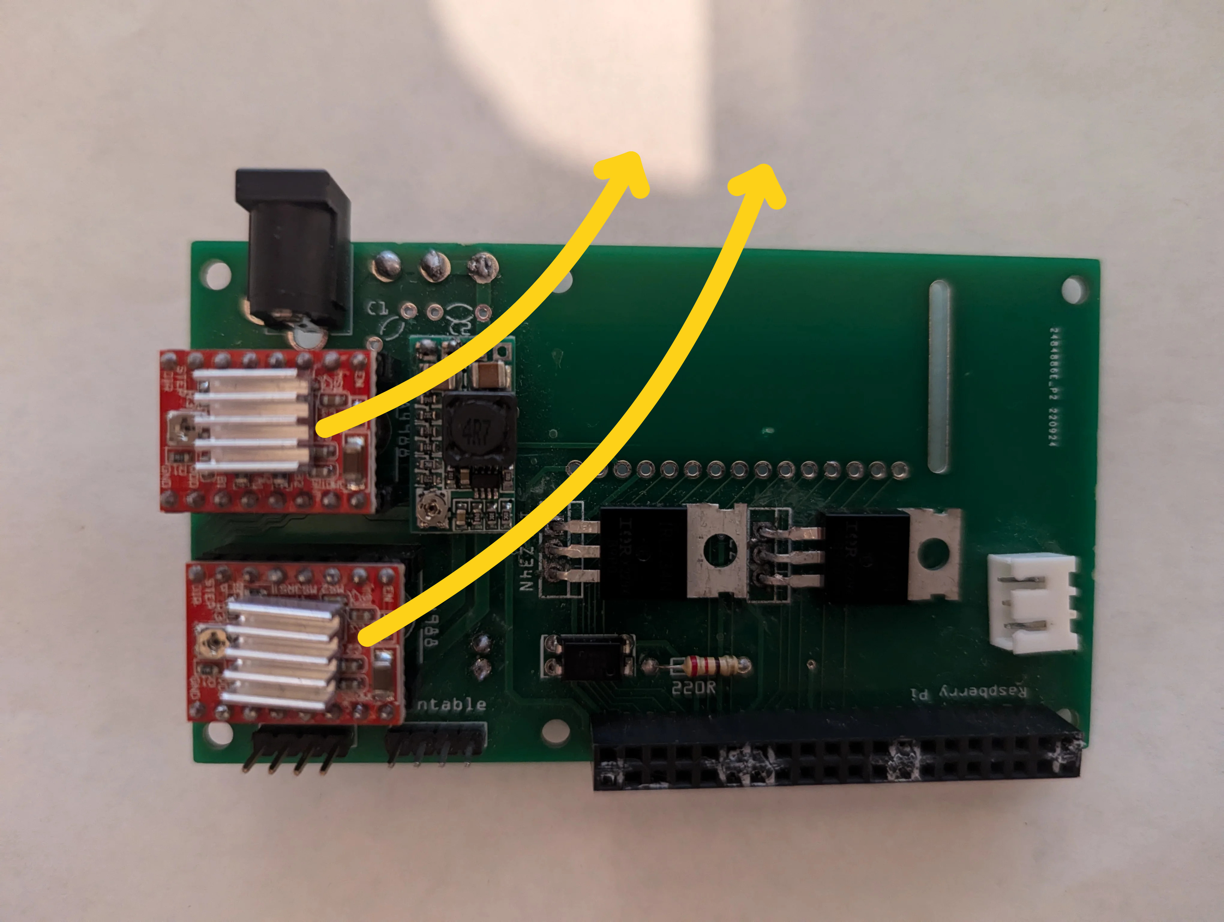 5. Replace the stepper motor drivers being careful to ensure they are correctly oriented.