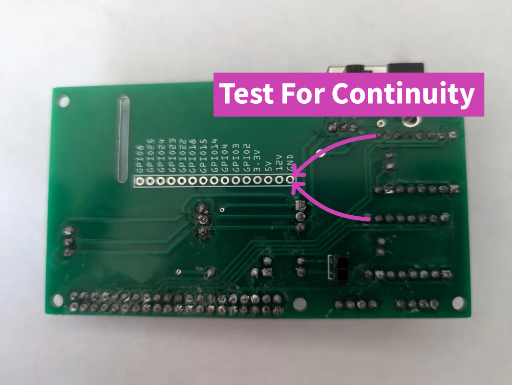 3. Using a continuity tester, check that the ENABLE pins are no longer connected to the GND terminal.