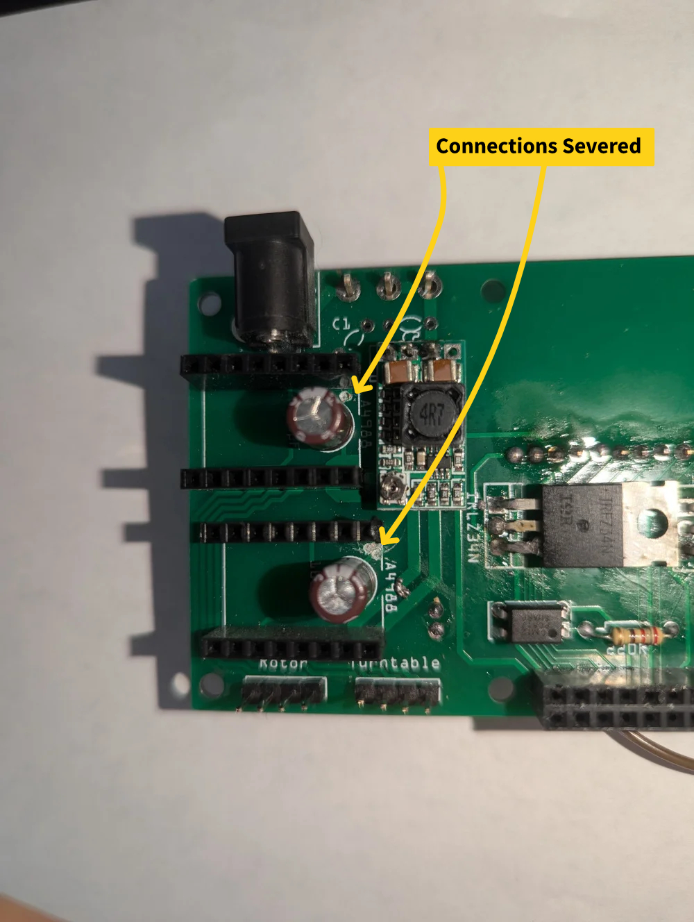 OpenScan Composer will automatically disable the turntable and rotor motors when they are not in use when using the Mini v2 (BlackShield). Disabling the motors uses less power and generates less heat when the device is not actively scanning. The following modification to the GreenShield will enable this functionality for the Mini v1/Classic (GreenShield).